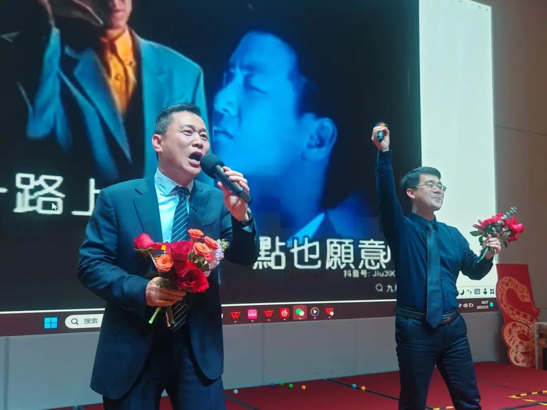 胡董與張總合唱的《一路上有你》將全場氛圍推向最高潮,并為本次晚會畫上圓滿句點。這首歌不僅是對過往并肩同行的深切回顧,更是對未來齊心攜手共奮進的堅定承諾。